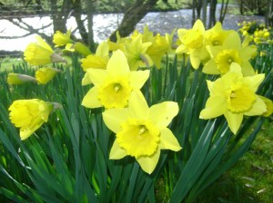 I’d love for you to join me, and you can start today by pulling on your jacket and wellies (or trainers, if you don’t have boots), leaving the house, no matter what state it’s in, and escaping to the out doors to look for signs of spring. Bits of green poking through the rich dark soil. Fuzzy buds on the ends of delicate tree branches. Or daffodils, like the ones I photographed today in my friend’s garden. Aren’t they happy?